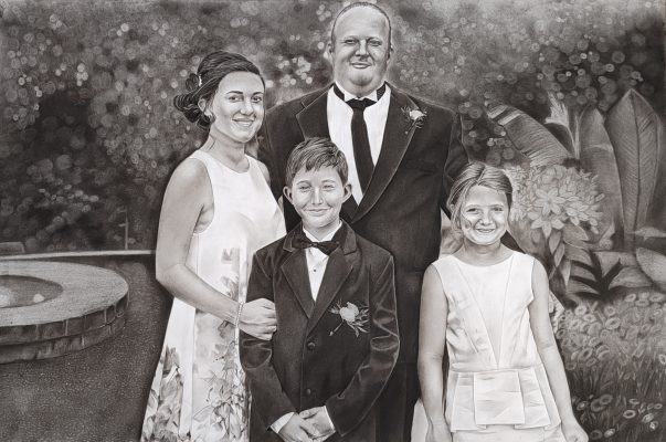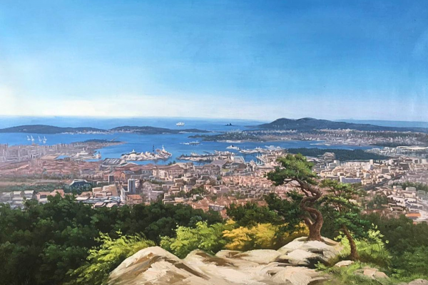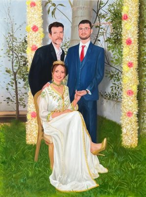 L’artiste peint ce qu’il voit, hors pour respecter les dimensions sur-mesure souhaitées par le client, il va falloir retravailler le visuel dans un format paysage à partir d’un format portrait.
